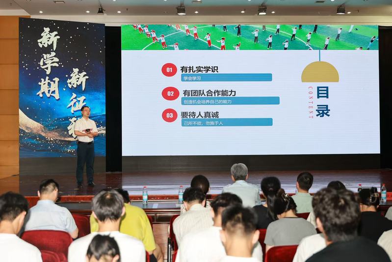 9月6日,化学化工学院喜迎469名新生,并于当日晚在啬园校区大学生活动中心举行了“向新·向智·向未来”2025级新生共学课。学院党委书记李清湘主持共学课,企业代表、校友代表、学院领导班子、教师代表以及2025级全体研究生、本科生与新生家长们700余人共学一堂课,活动通过网络平台同步直播。