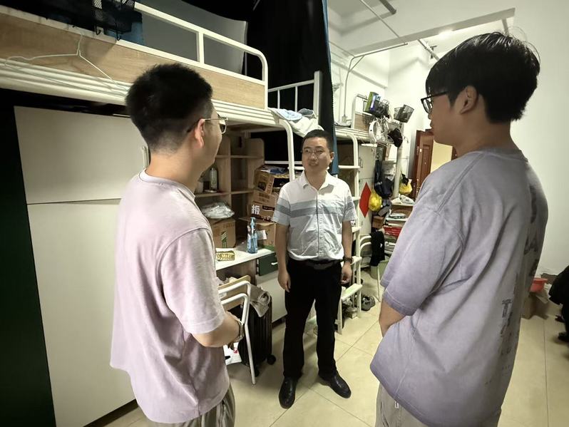 为进一步掌握学生思想动态,关心学生假期生活及返校后的适应情况,9月1日下午,学院党委书记李清湘,党委副书记、副院长(主持)钱涛带领班子成员深入学生宿舍开展走访活动,为同学们送上新学期的问候与关怀。
