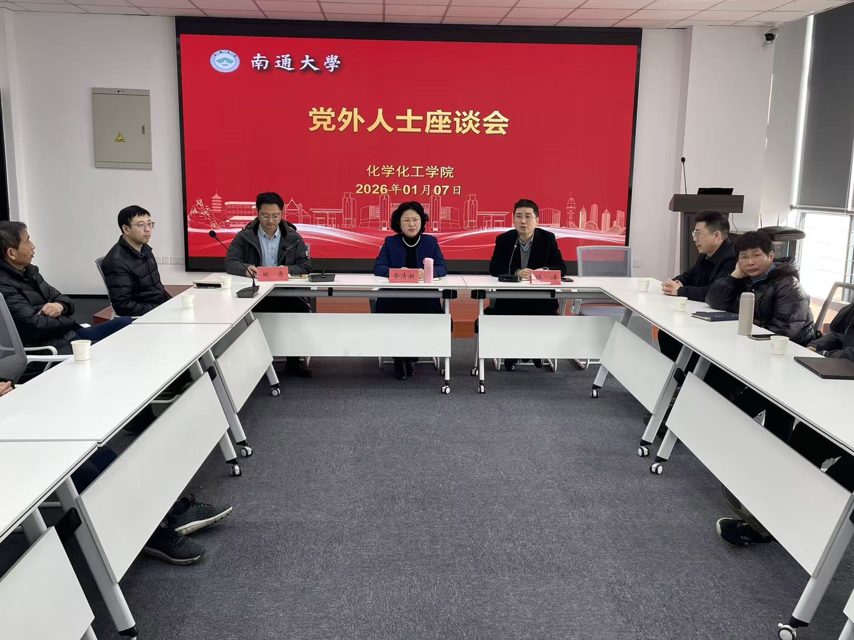 1月7日下午,化学化工学院党外人士座谈会在纺化楼C-719举行。学院民主党派代表与群众代表齐聚一堂,围绕学院发展建言献策。院党委书记李清湘,院党委副书记、副院长(主持工作)钱涛出席座谈会,会议由统战委员姚勇主持。